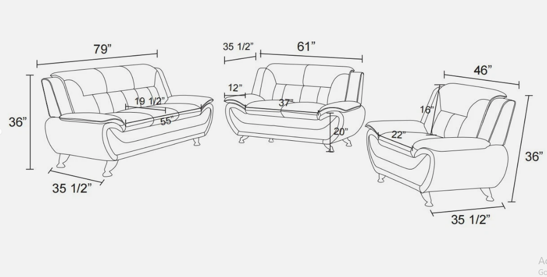 Black Leather Gel 3PC Sofa Set Contemporary Modern Living Room Furniture